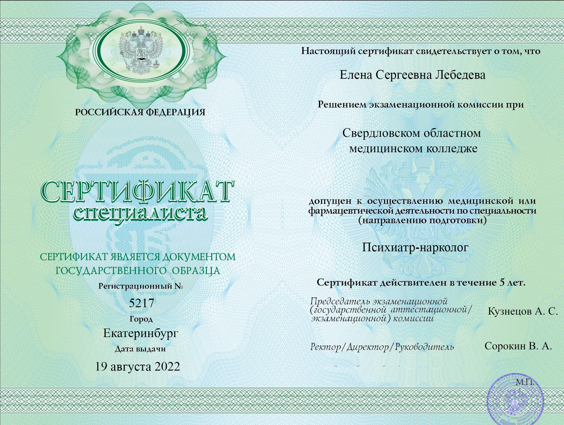 Елена Сергеевна Лебедева врач нарколог клиники доктора Стукаловой в Нижней Туре
